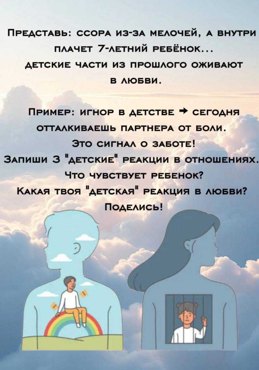 Внутренний ребёнок в отношениях - это твои детские части,которые оживают в ссорах и любви.